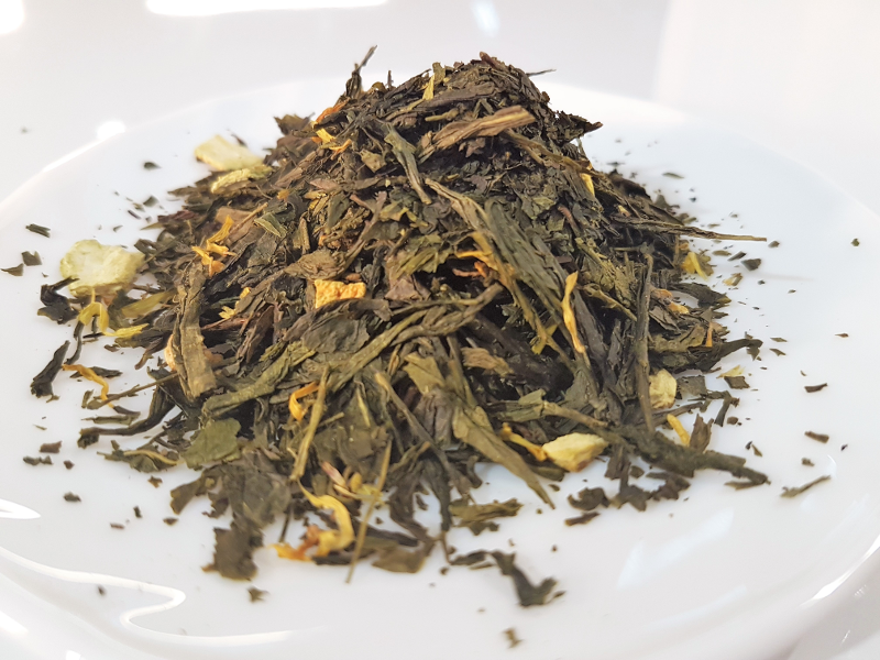 • Natürlich aromatisierter grüner Tee ( China Sencha ) aus kontrolliert ökologischem Anbau.